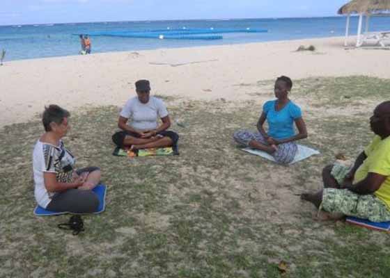 七月十四日和十五日,法国海外省瓜德路普的部份法轮功学员来到玛丽加朗特岛,在格朗布尔市(Grand Bourg)进行了炼功和讲真相的活动。