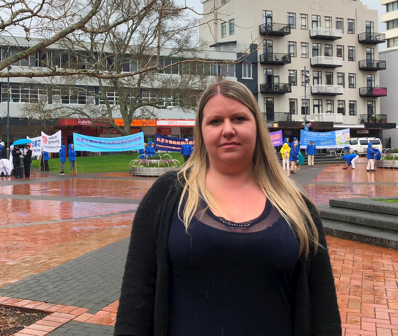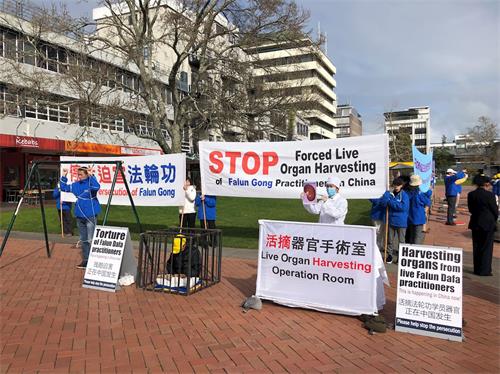切丽·布鲁姆霍尔(Cherie Broomhall)就在市中心工作,午休时间出来看见法轮功学员模拟演示酷刑和中共如何活摘人体器官时,她的眼泪一直在眼眶里打转。她说,当她听到中共活摘人体器官时,她难过得快哭了,实在不能理解、不敢相信。她说:“作为一个人,绝对不能因为追求平和(Peace),而遭受迫害。我都不知道这个世界上还有象中共这种独裁政府存在。我相信许多新西兰人也不知道,它们(中共)干的事让人毛骨悚然,恶心至极(Disgusting)。我实在不可想象。新西兰政府应该让法轮功学员都来新西兰定居。”