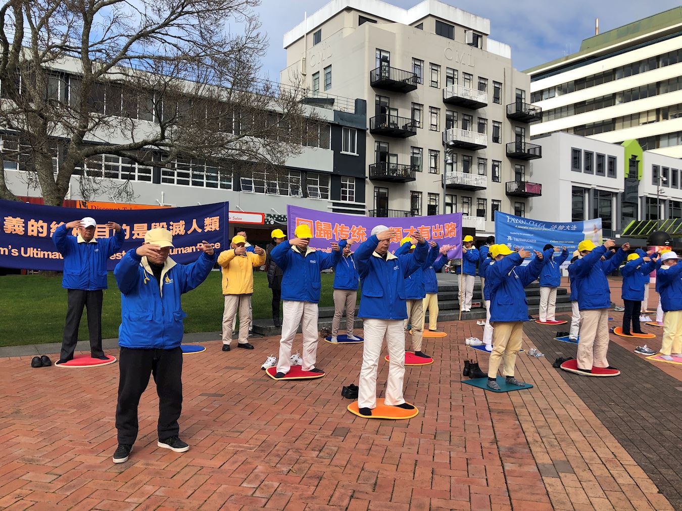 ![]() 图1~2:新西兰法轮功学员在汉密尔顿市中心集会、炼功、讲真相。 |