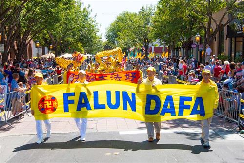 【明慧网二零一八年七月五日】(明慧记者李若云美国旧金山湾区报道)二零一八年七月四日是美国独立日,旧金山湾区红木城举行了一年一度的盛大游行,这是北加州最大的独立日游行。法轮功学员再次应邀参加,并受到主办方和观众的欢迎。