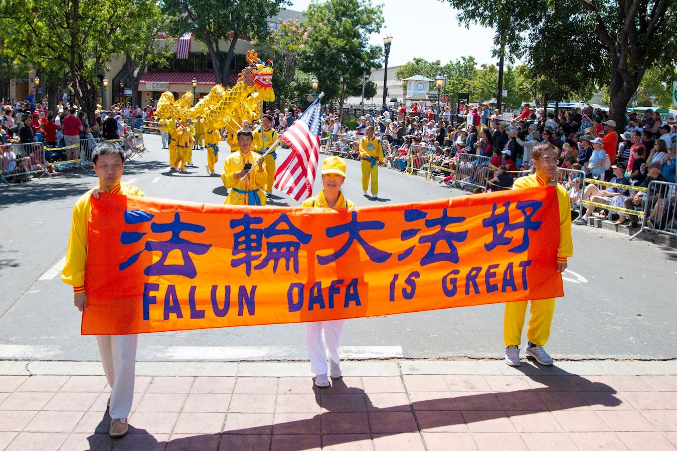 二零一八年七月四日,尽管天气炎热,人们兴致不减。成千上万的人聚集在华盛顿特区的宪法大道上,观看有120个团体参加的盛大游行。主办方继续介绍:“法轮大法,也叫法轮功,是秉承真善忍原则的古老的身心灵修炼方法。一九九二年法轮功首次被介绍给公众。自此,法轮功为超过80个国家的上亿人带来身心健康。”