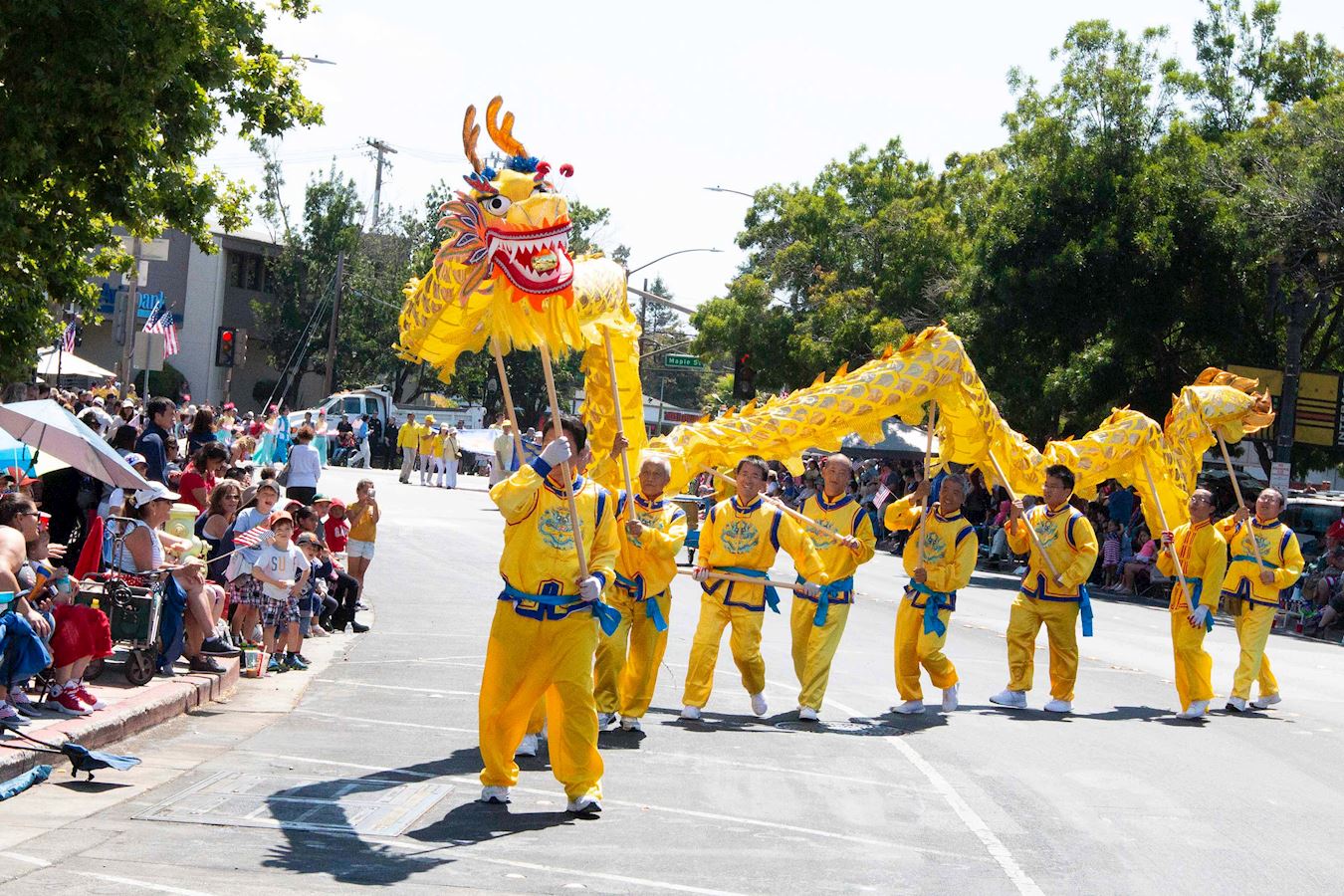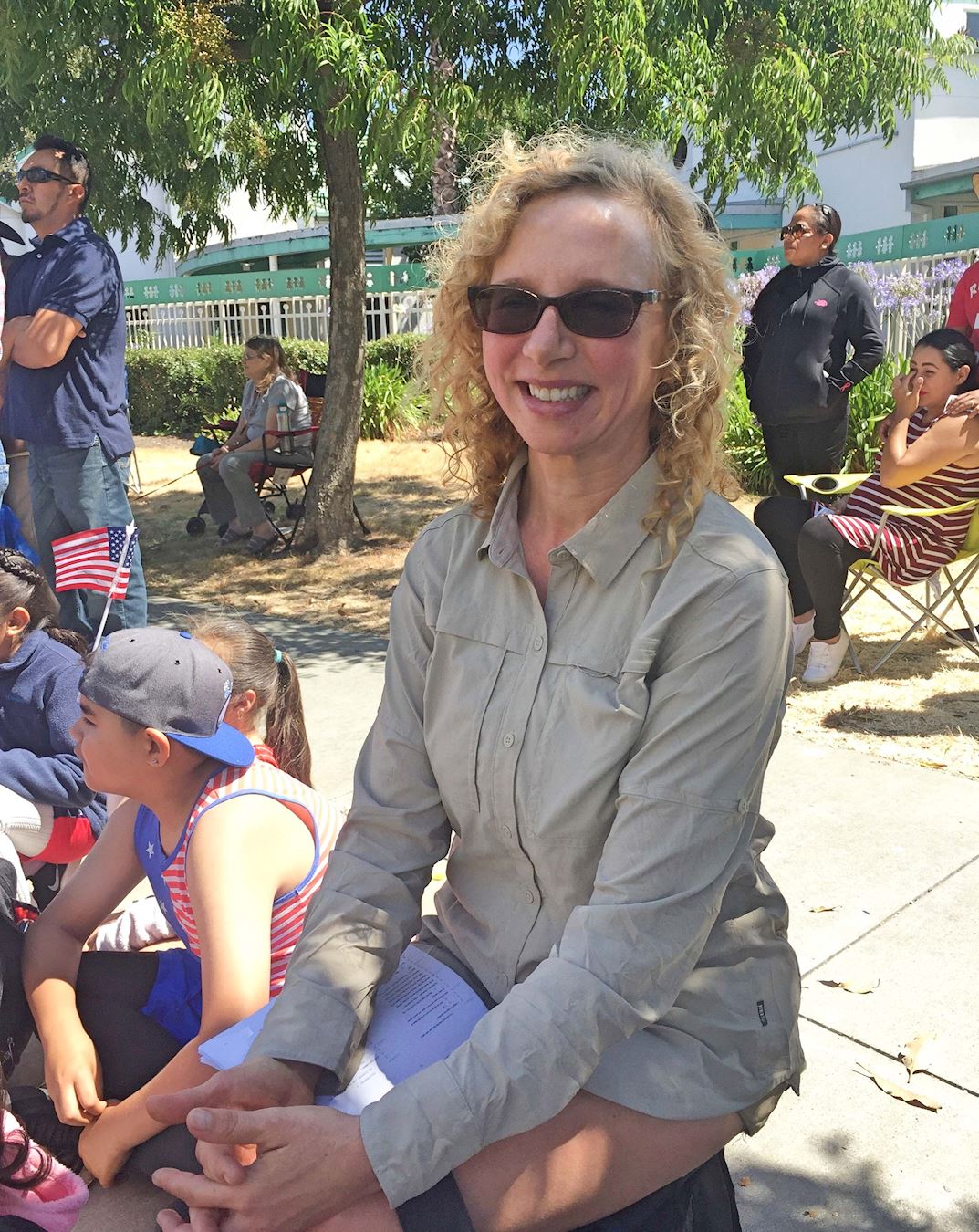当天的红木城风和日丽,游行未开始,道路两旁已经坐满了等待观看游行的观众。他们很多人每年都来观看这个游行,其中不少人是从小时候跟随父母来,现在长大了就带着下一代来,因为他们这是美国的一个传统节日,父母希望儿女能通过观看这个游行感受美国的传统,而且记住美国信仰自由、人权和宪法等的立国之本。