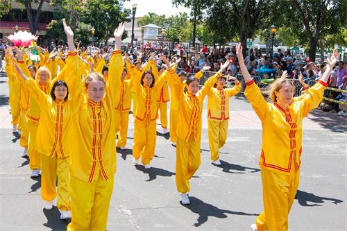 ![]() 图4:天国乐团成员都修炼法轮功,并从修炼中得到灵感。他们展现法轮功学员的祥和和美好,并给游行观众带来振奋人心的音乐。 |
