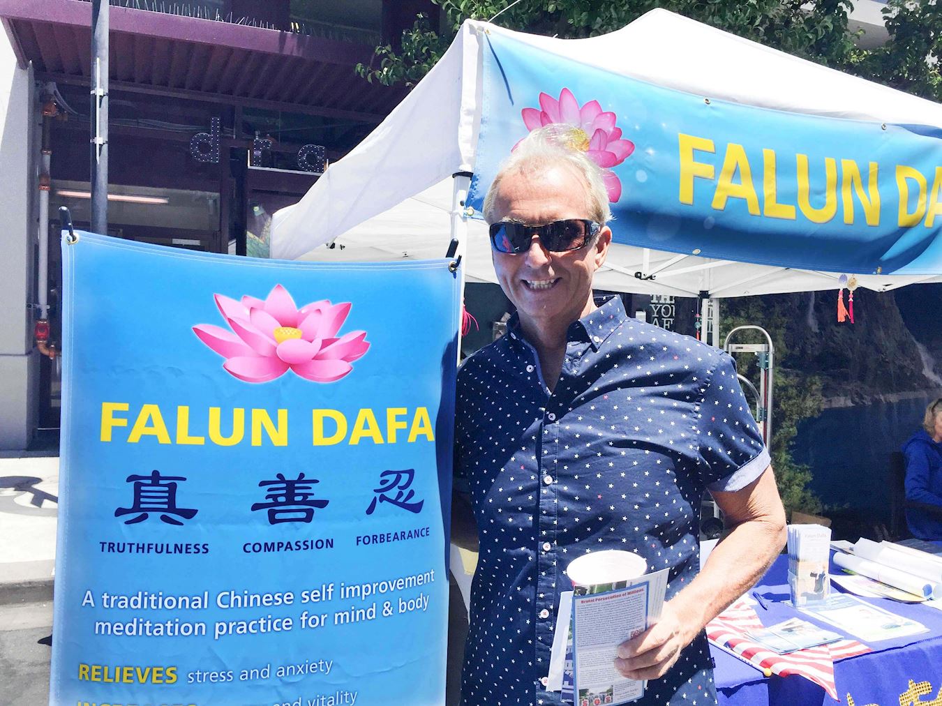 一位来自中国的华人先生经过法轮功的摊位时停下脚步,脸上带着疑问,学员礼貌的递上一份介绍法轮功的真相资料,他问学员:法轮功是不是气功?学员告诉他,法轮功是一门佛家修炼大法,一九九二年从中国长春开始传出时,确实是以气功的形式传的。这位先生又问当年“围攻”中南海是怎么一回事?学员告诉他:那是“和平上访”。他一下似乎恍然大悟,原来如此。