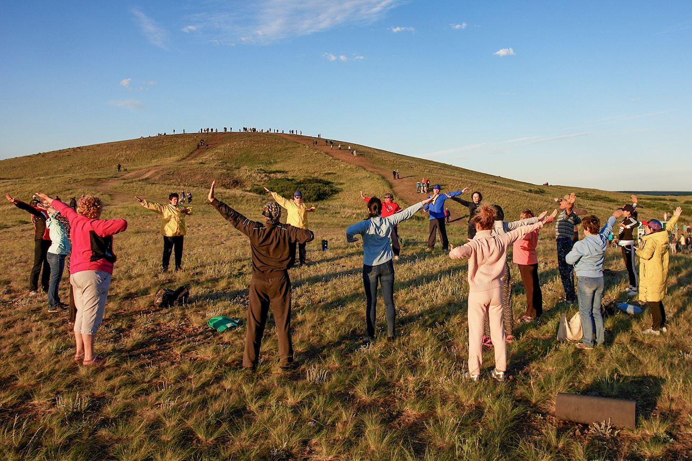 '图1~5:俄罗斯阿尔卡伊姆古城民众学炼法轮功'