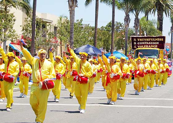 7月4日美国242周年国庆,圣地亚哥法轮功学员参加了科罗纳多独立日国庆游行。游行组委会主席称赞法轮功队伍是一个美好的队伍。