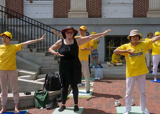 家住佛蒙特州艾塞克斯村的萝丝·戴梦德是上个月在伯灵顿市教堂街驻足观看法轮功学员炼功后,表示想参加法轮功简介班的新学员。