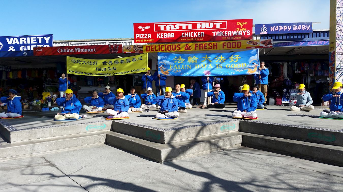 图1:法轮功学员在奥克兰南区(Otara)集体炼功