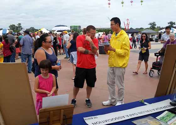 - “希望我能帮助你们”(图)- 七月二十八日,法轮功学员参加了内布拉斯加州亚洲节活动,与民众分享法轮大法。一些民众当场跟学员学炼功法,体验法轮大法的玄妙。