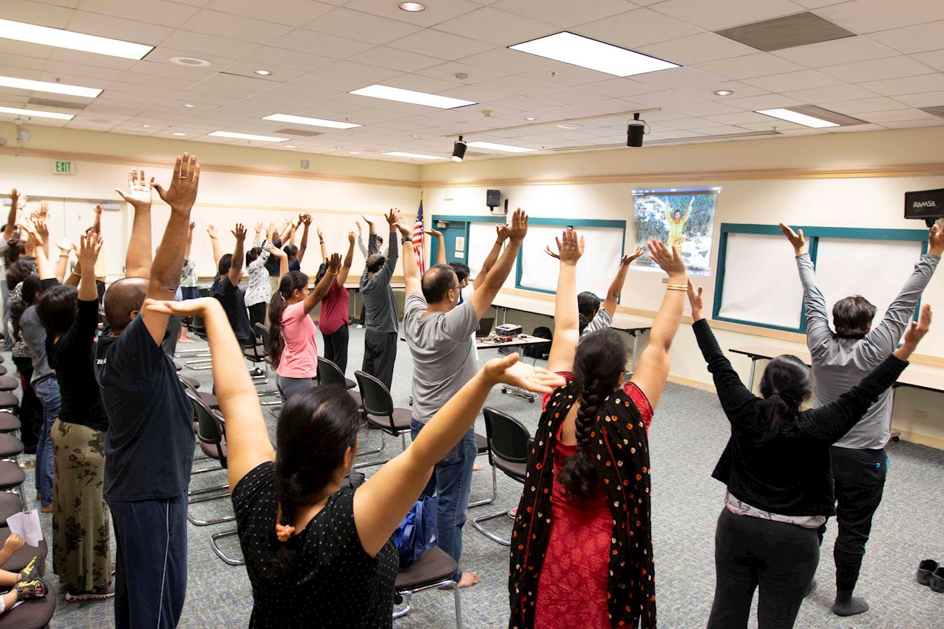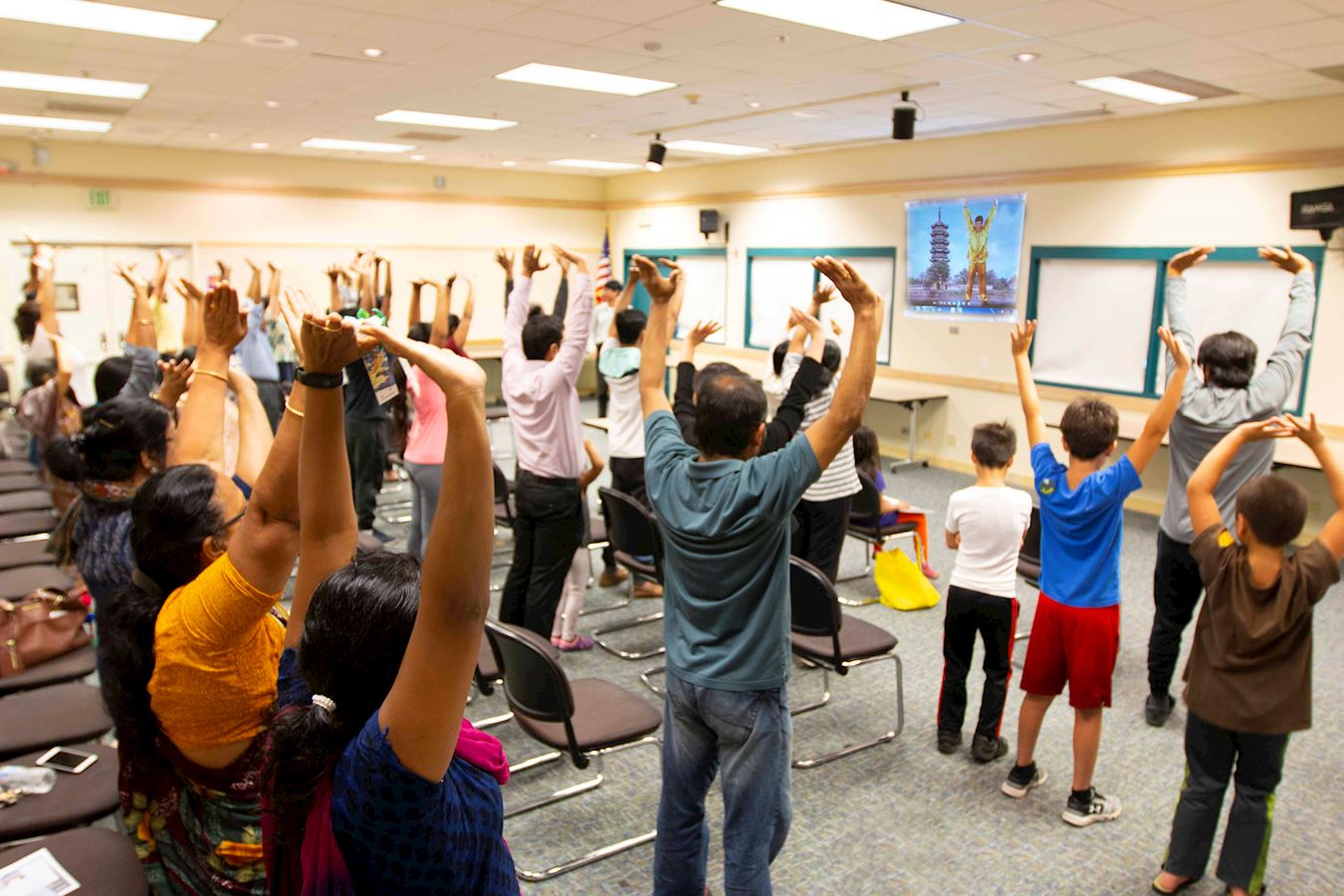 二零一八年七月的最后一天,美国北加州佛利蒙(Fremont)法轮功学员在图书馆举办了七月份的第二个法轮功教功班。七月初的教功班因为人数很多,许多人询问下一个班什么时间举办,所以临时增加了这个班。当天有近四十人前来学功。