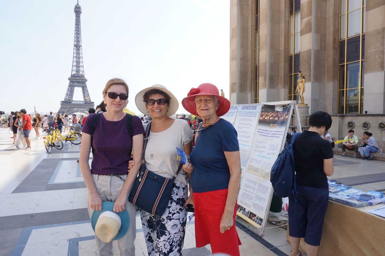 ![]() 图6:8月19日,巴黎部份法轮功学员在人权广场上和过往世界各国的游客交谈 |