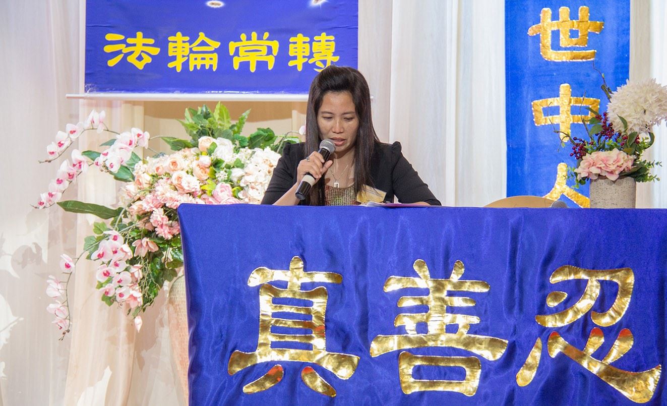 当天法会上有十八位学员分享了他们得法的经过,碰到魔难时、如何遵照“真、善、忍”原则提升自己的心性,闯过难关的心路历程,以及如何向人们讲清法轮功真相,做好三件事的心得体会。法会会场庄严殊胜、祥和喜悦。