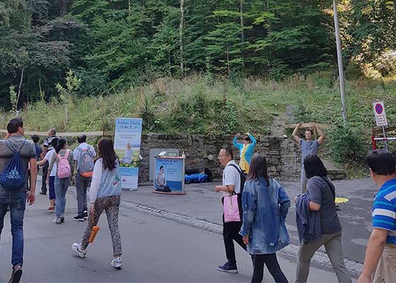 “哇!他们打坐打得真好。”在德国旅游胜地新天鹅堡,当大陆游客路过法轮功学员信息点时,很多人不由自主地说:“这边也有法轮功啊。”