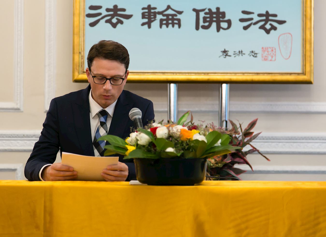 英国西人学员尼尔·伍德罗(Neil Woodrow)在法会上分享了自己两年来通过加强自我修炼从而能更好的证实法的修炼经历。他注意到,自己日常生活中的事及他直接参与的大法项目能否顺利進行,与他自身修炼状态有极大关系。他下决心要听师父的话,认真做好三件事,走好师父慈悲安排的正法时期大法弟子的路。