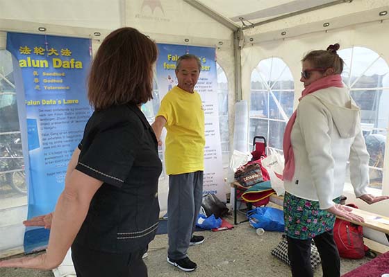 8月25日至28日,法轮功学员在丹麦首都哥本哈根海港文化节上向广大民众介绍法轮功,受到人们的欢迎。