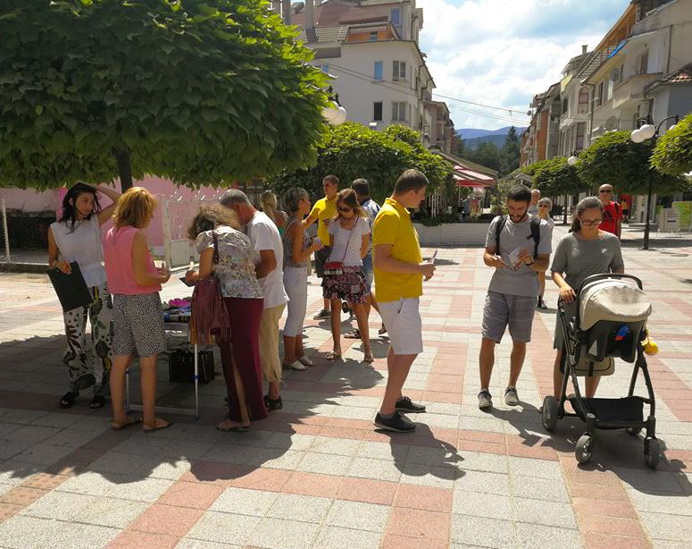 八月十八日,法轮功学员的征签活动来到佩什泰拉市(Peshtera)。该市以古代堡垒和众多的洞穴而闻名。八月十九日,法轮功学员来到旅游城市韦林格勒市(Velingrad),该市的许多居民已经了解法轮功真相,并已经在征签簿上签了名。当地罗姆族人(Roma ethnicity)经常去国外打工。他们说在德国柏林和法国波尔多(Bordeaux)就见过当地的征签活动。各个阶层的人都表示,他们支持在中国的法轮功学员。