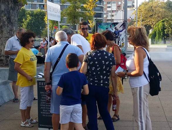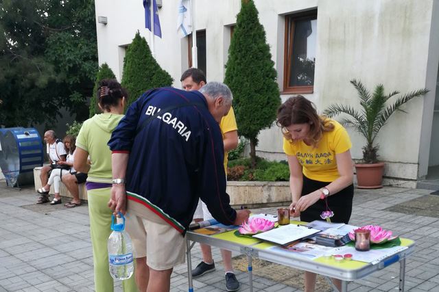 八月十六日,法轮功学员在布尔加斯市(Bourgas)征集到八十五个签名。许多居民已经了解法轮功真相和在海花园的炼功点。该市著名的博客主也支持法轮功学员的征签活动,并在社交媒体上发布了征签消息。她的一些粉丝也前来在请愿信上签名。