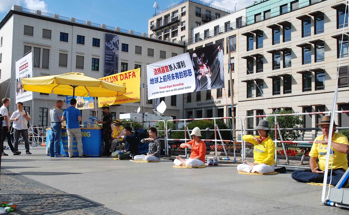 ![]() 图1:勃兰登堡广场前的法轮功信息台 |