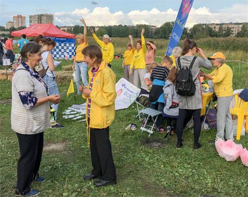 【明慧网二零一八年九月十六日】二零一八年九月初,圣彼得堡市法轮功学员参加了由当地市政府在伊万诺夫(Ivanov)公园组织的学年开始的庆祝活动。据组织者说,今年来参加此次活动的游客有超过八千人。