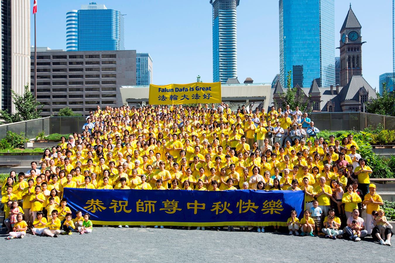 ![]() 图:二零一八年九月十六日,多伦多法轮功学员汇集在市府大楼前,怀着无限感恩的心、恭祝师父中秋快乐! |