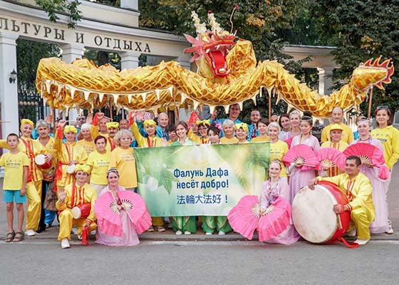 八月二十五日,在俄罗斯卡鲁加市举办了盛大的城市日游行活动,法轮功学员的游行队伍受到当地市民的热烈欢迎。