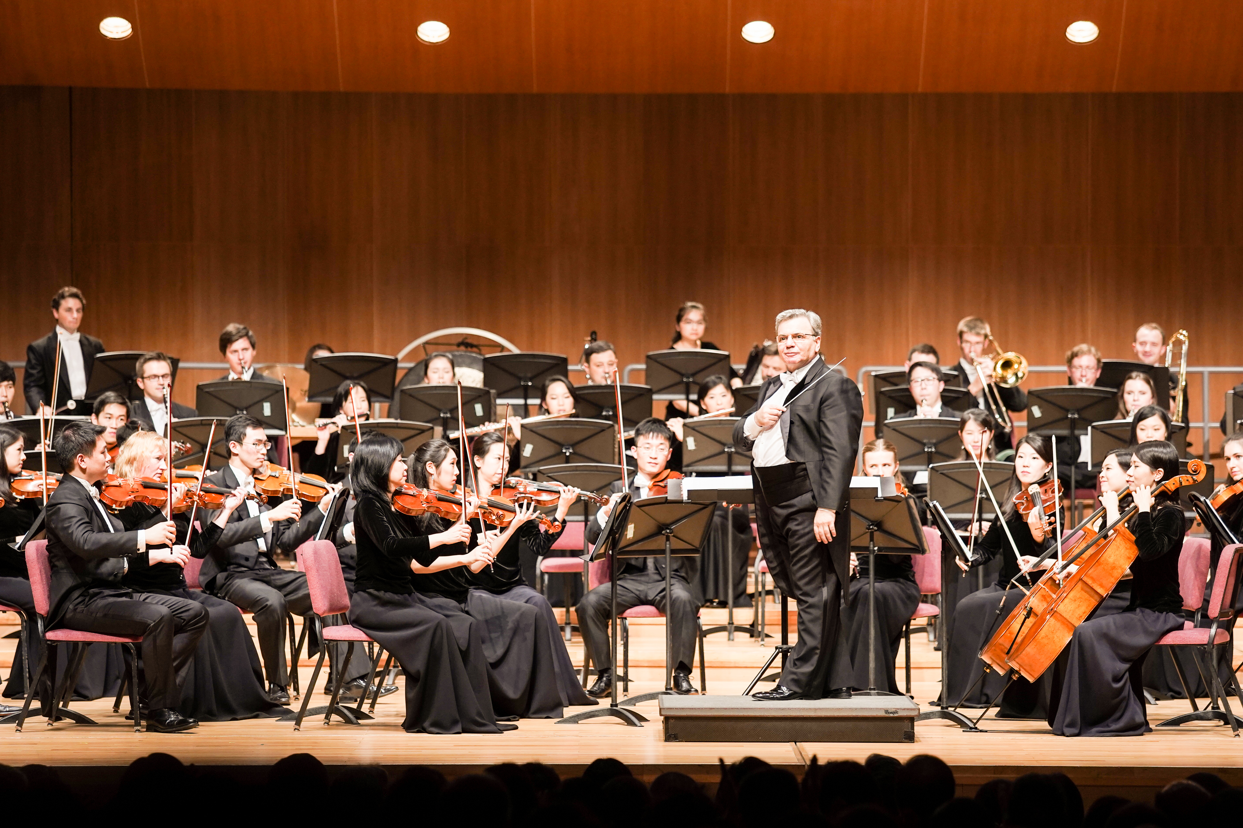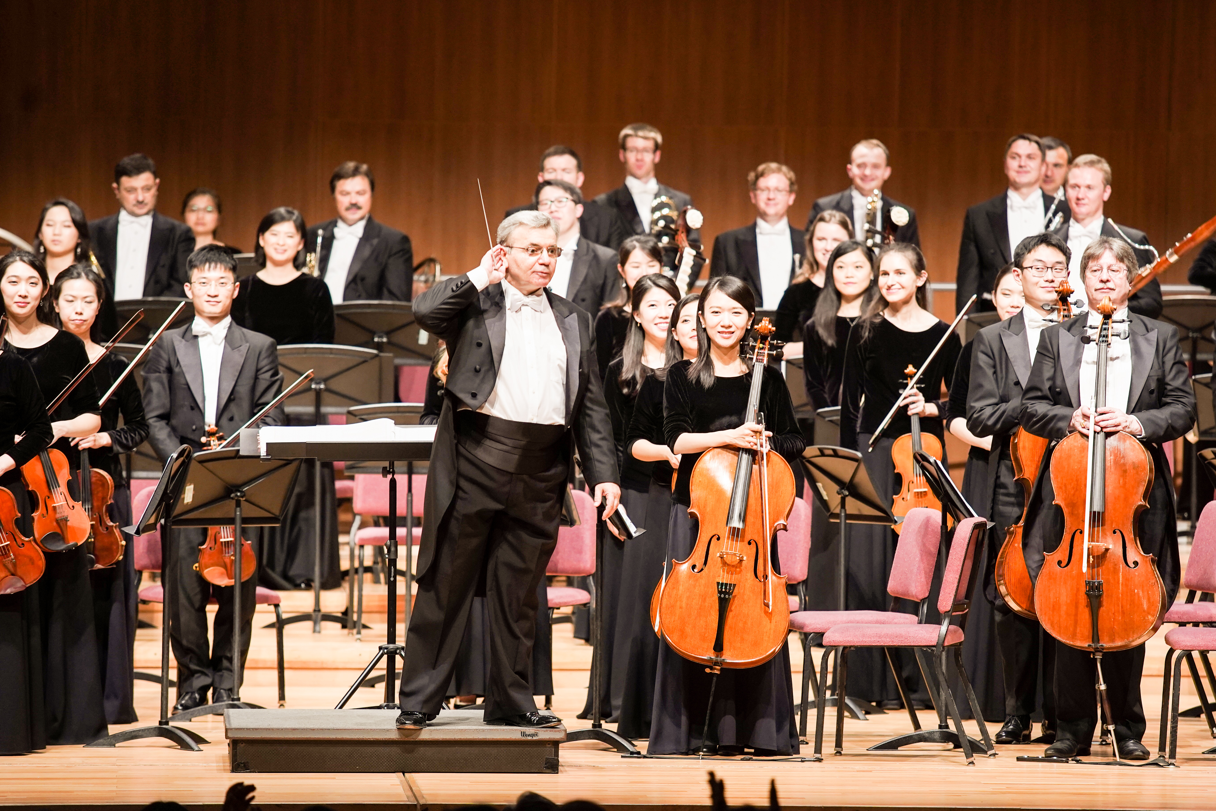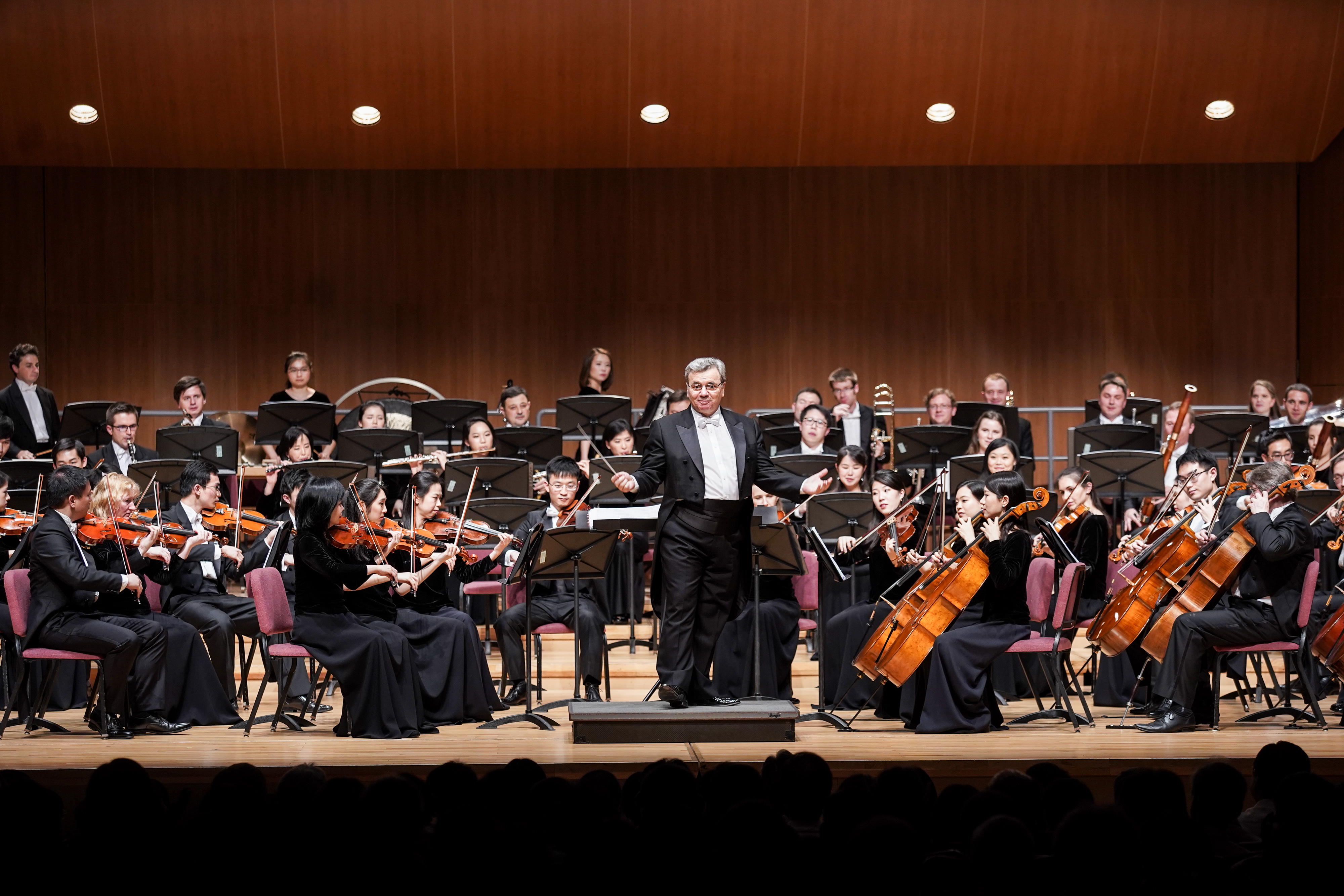 ![]() 图2:二零一八年九月十九日晚,神韵交响乐团于台北中山堂举行演出。演出中,指挥米兰‧纳切夫不但指挥台上乐团的演奏,不时也指挥着台下的观众,与台上的互动。 |