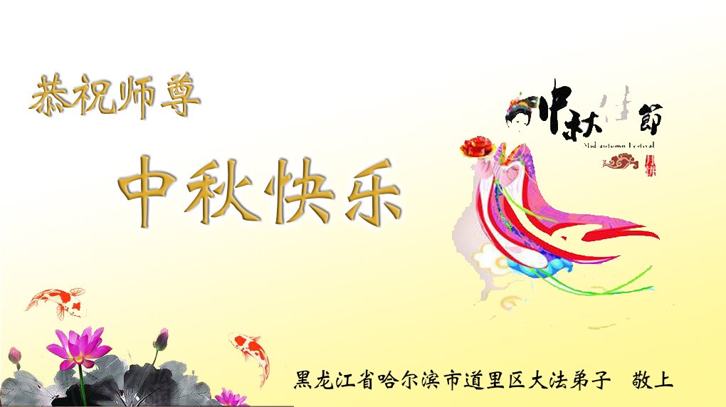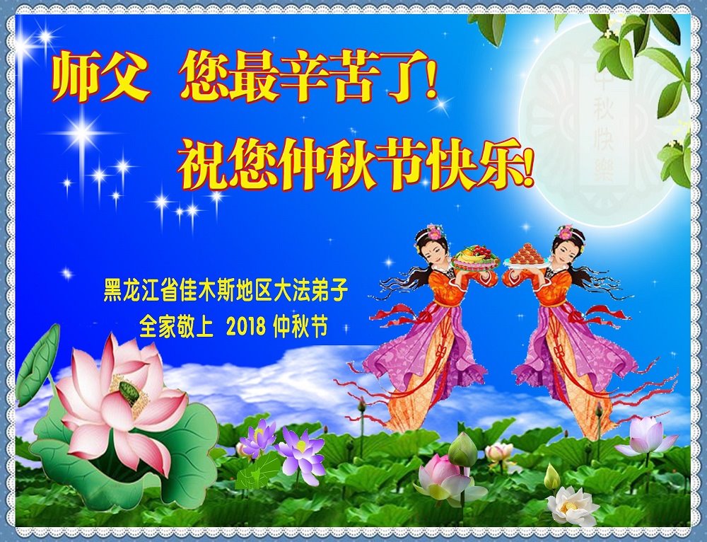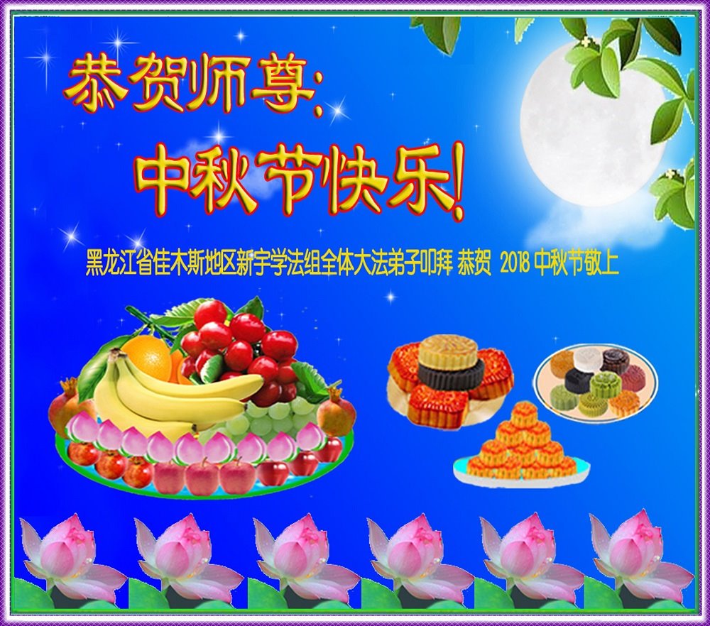 黑龙江省富锦市金融、职教、建设、商业系统等全体大法弟子恭祝慈悲的师父中秋佳节好!