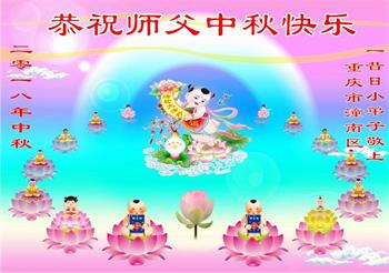 “每逢佳节倍思亲”,在中秋佳节来临之际,我代表全家人恭祝师尊中秋节快乐!我们都非常想念您!我们都盼望着早日与师尊团圆。现在唯有做好三件事,精進实修,争取做一个合格的大法弟子,不负师恩。弟子叩拜师尊!