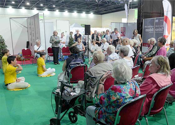 九月十八、十九日两天,法轮功学员在德国不来梅老年人健康展览上介绍功法,许多访客被法轮功的祥和与内在力量所吸引。