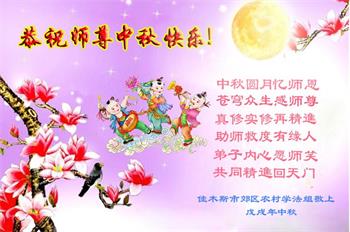 黑龙江佳木斯市郊区农村学法组大法弟子恭祝师尊中秋快乐!北京市昌平区一农村学法小组全体大法弟子恭祝师尊中秋快乐!