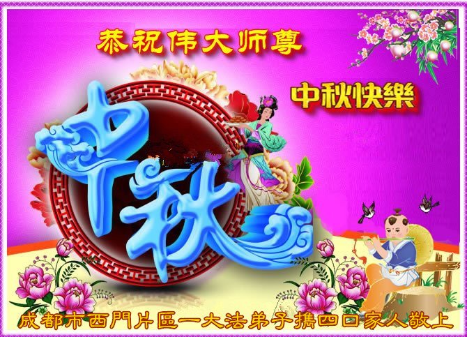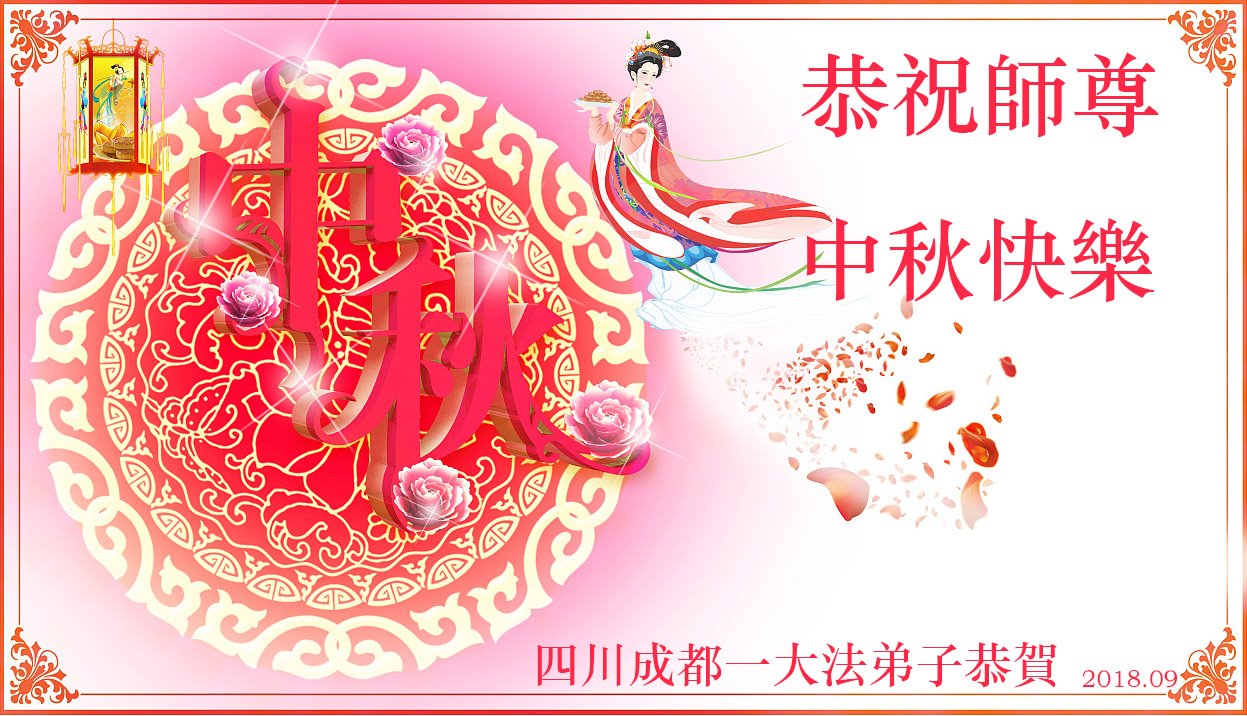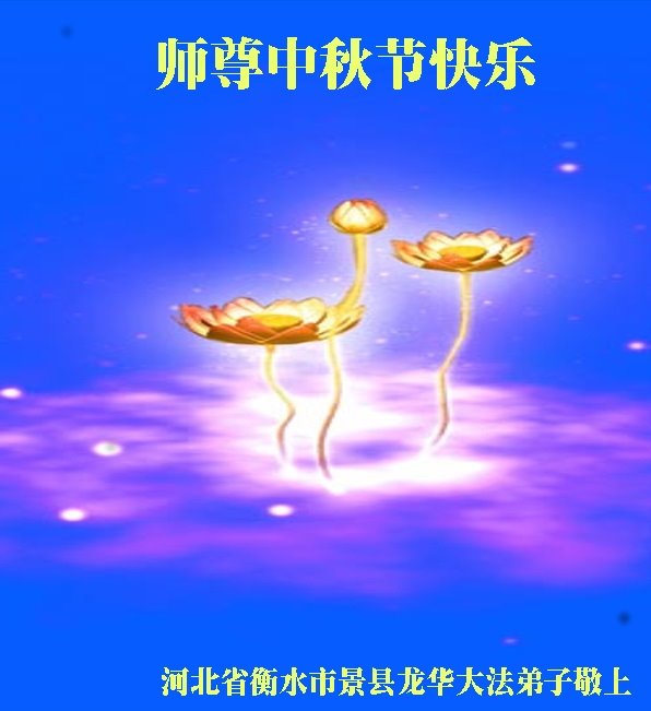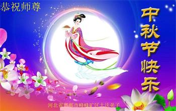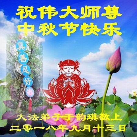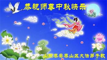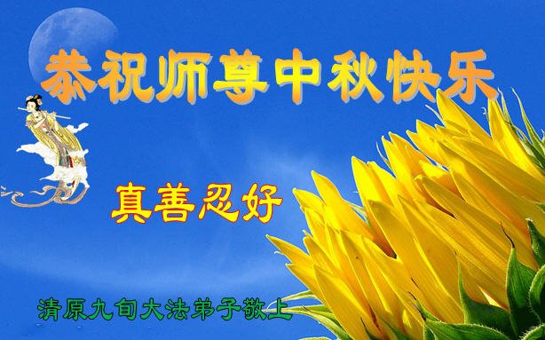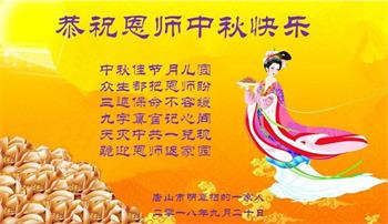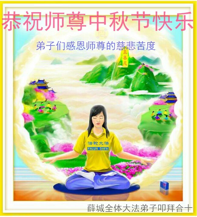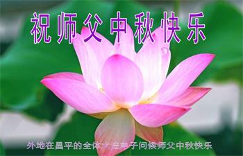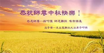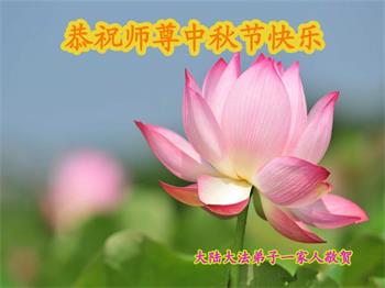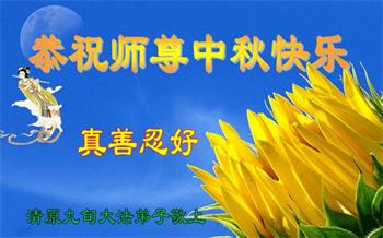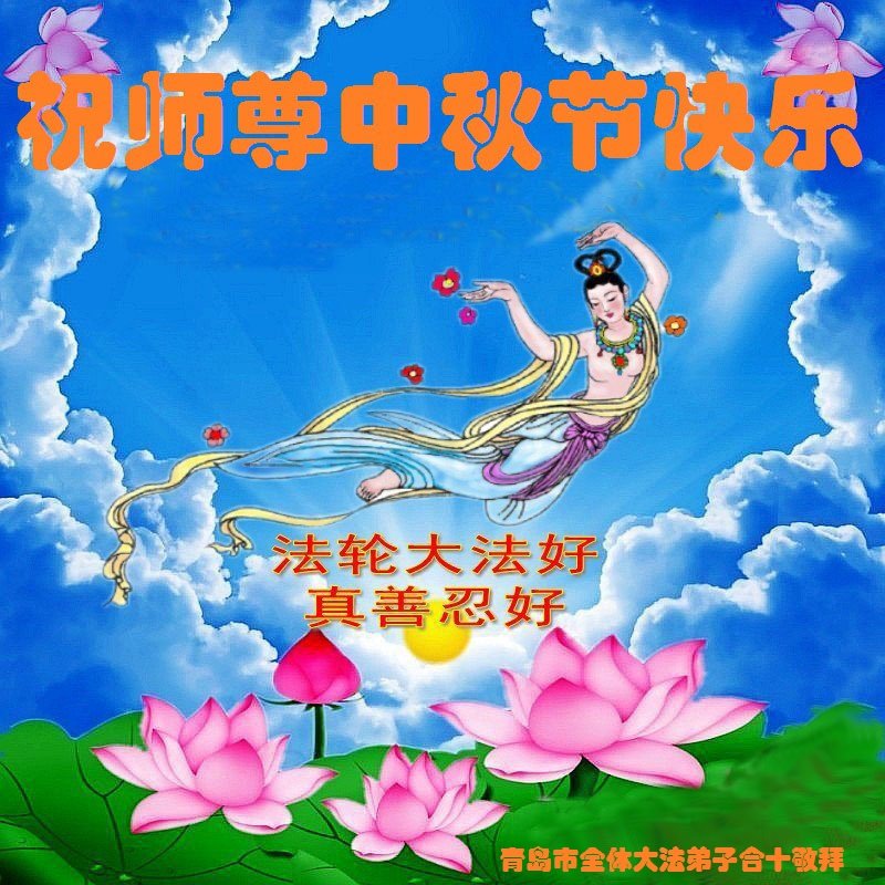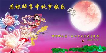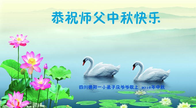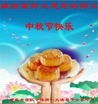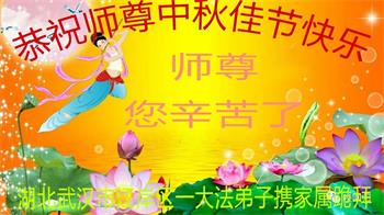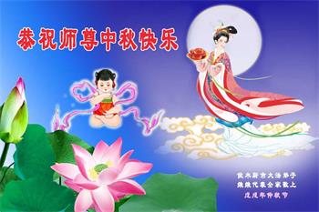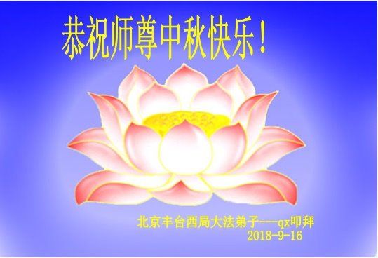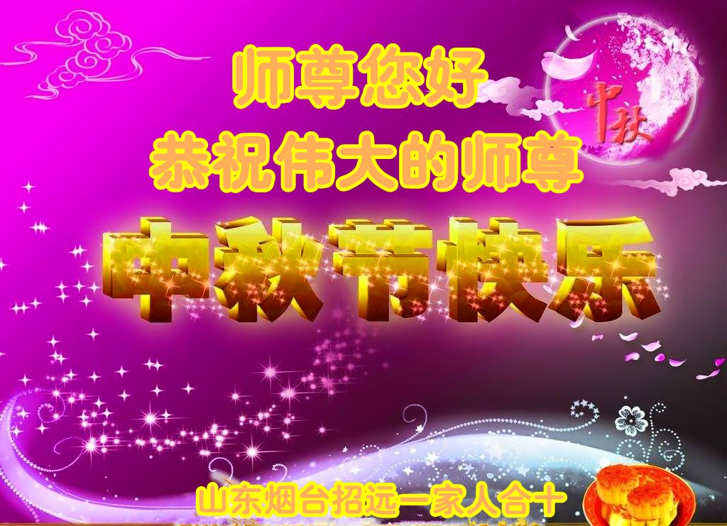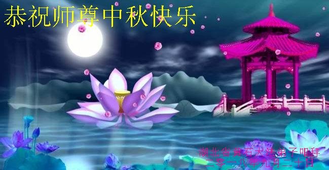 师尊您好!师尊辛苦了!在这中秋佳节来临之际,弟子非常想念师尊,弟子心怀无限的感恩和崇敬恭祝师尊中秋快乐!在弟子修炼路上每前進一步,都浸透了师尊的无量慈悲和巨大付出,弟子叩谢师尊佛恩浩荡! 我们要学好法、学懂法,修好自己,在提高心性上多下功夫,认真做好三件事,这是我们的责任,我们一定会做得更好,因为我们有伟大的师父,有伟大的法!