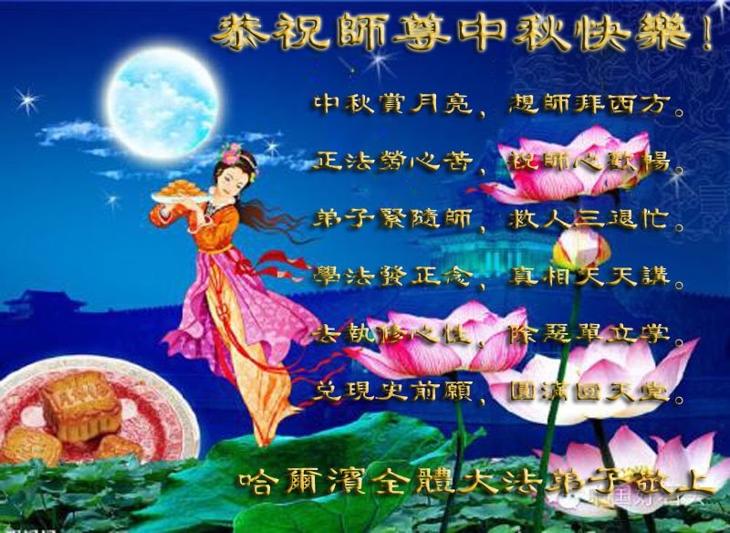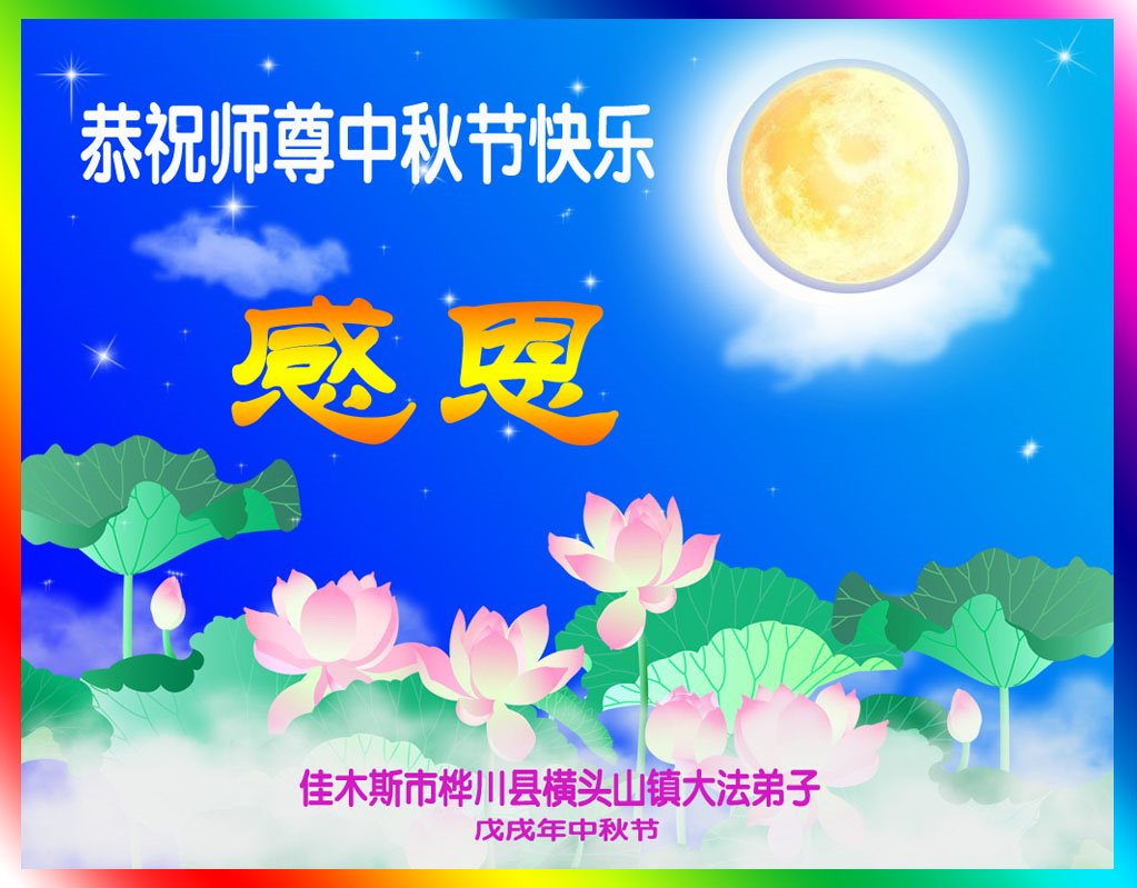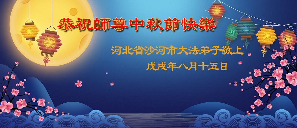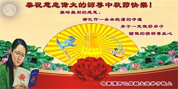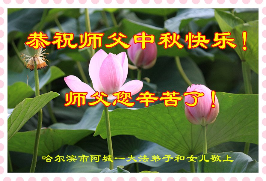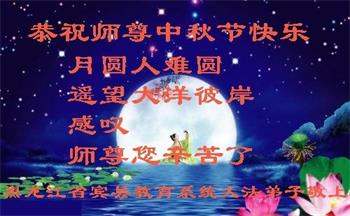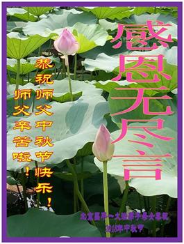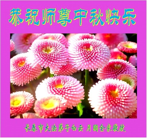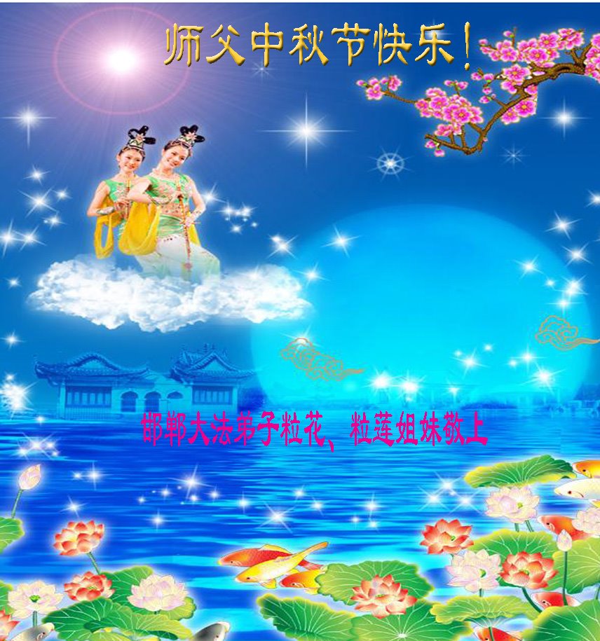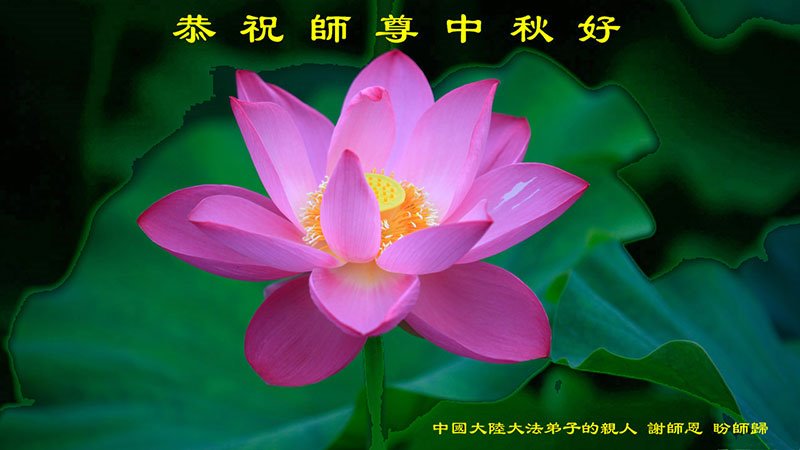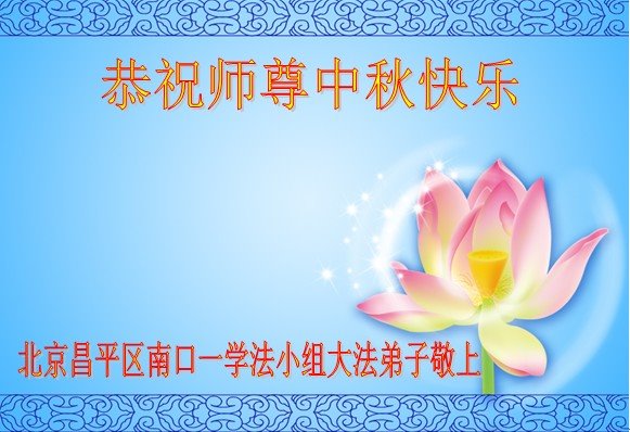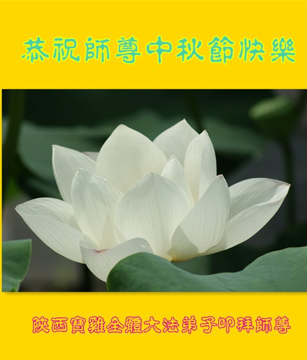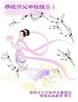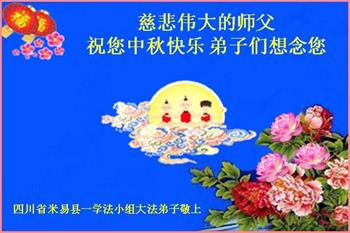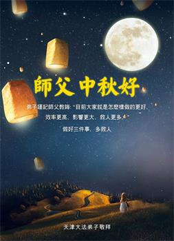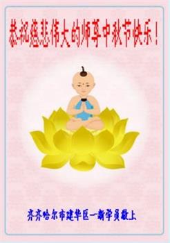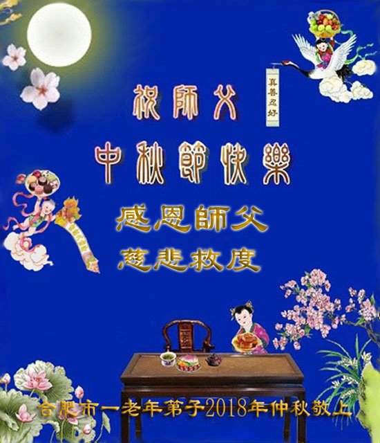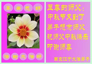 师尊您好!师尊辛苦了!在这中秋佳节来临之际,弟子非常想念师尊,弟子心怀无限的感恩和崇敬恭祝师尊中秋快乐!在弟子修炼路上每前進一步,都浸透了师尊的无量慈悲和巨大付出,弟子叩谢师尊佛恩浩荡! 我们要学好法、学懂法,修好自己,在提高心性上多下功夫,认真做好三件事,这是我们的责任,我们一定会做得更好,因为我们有伟大的师父,有伟大的法!