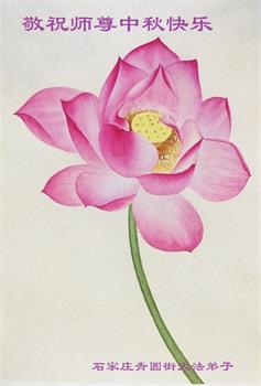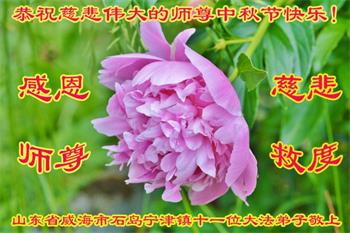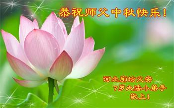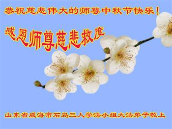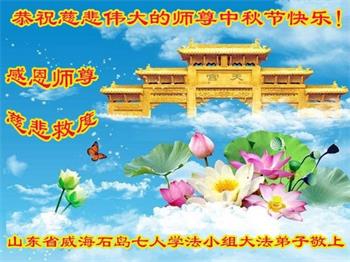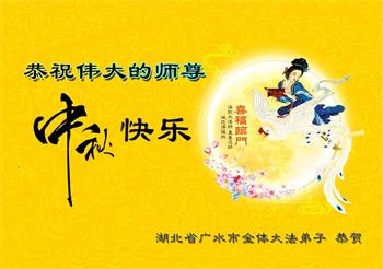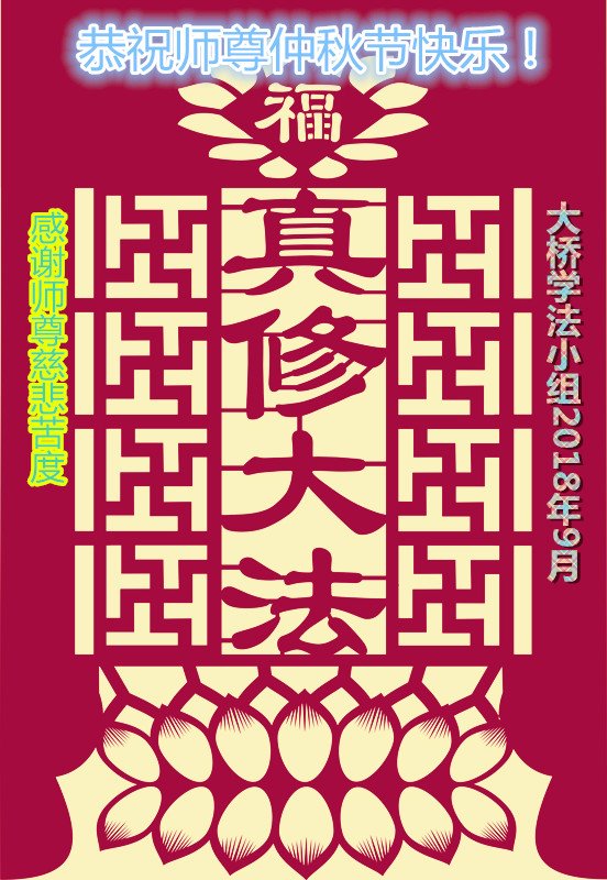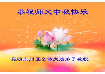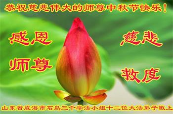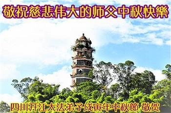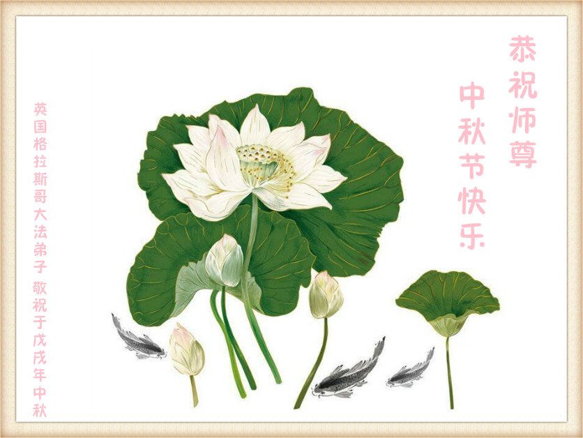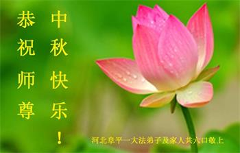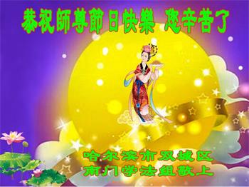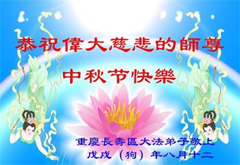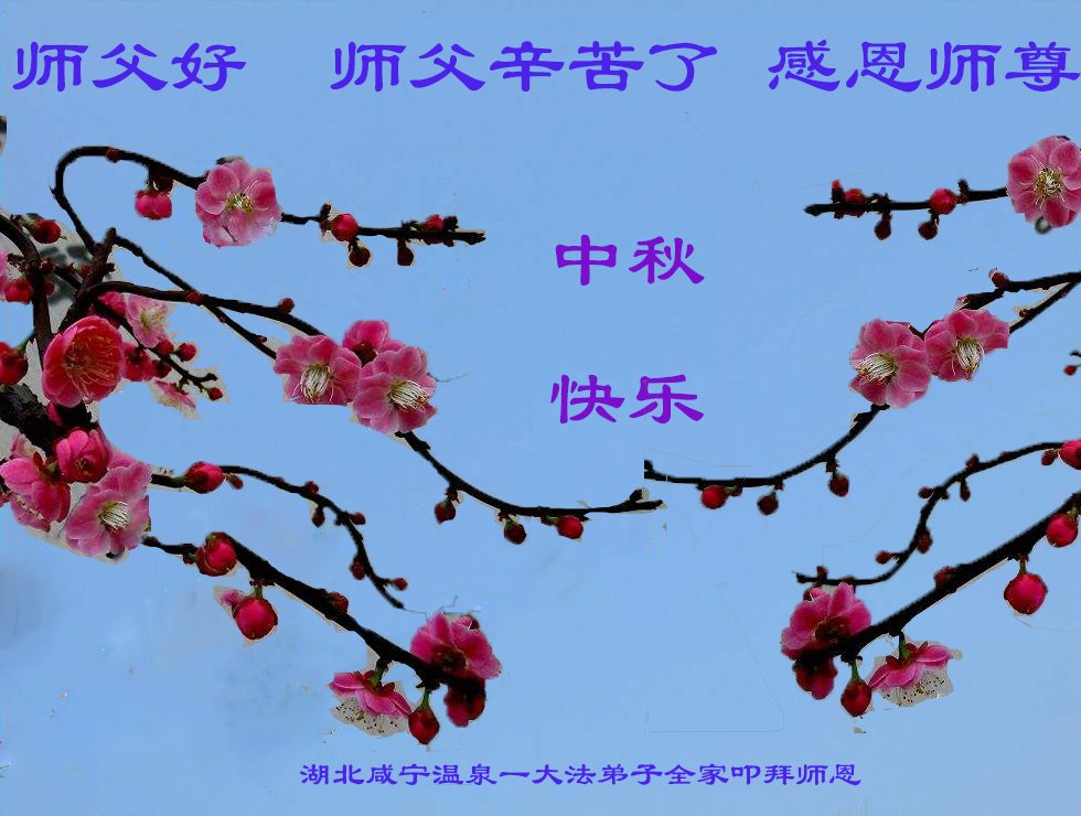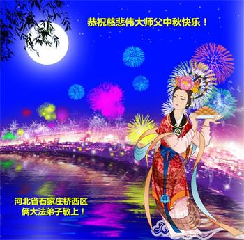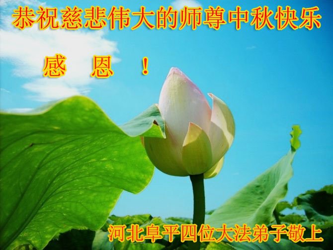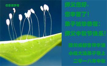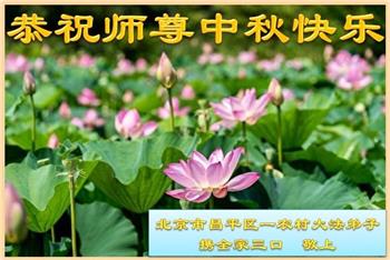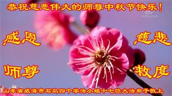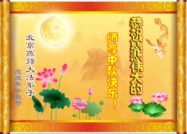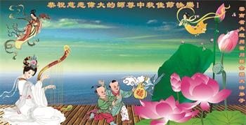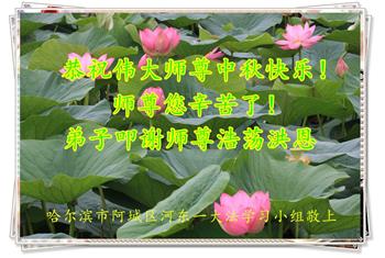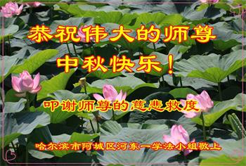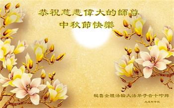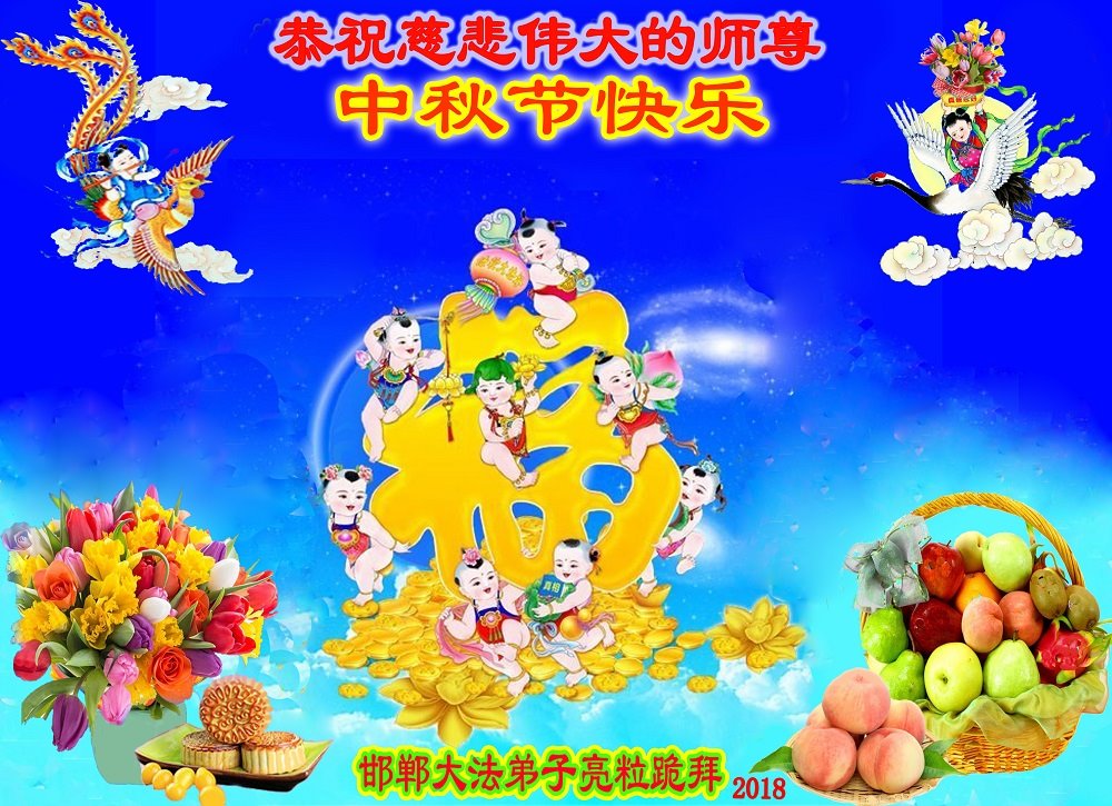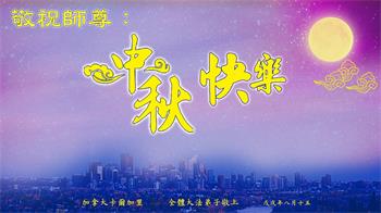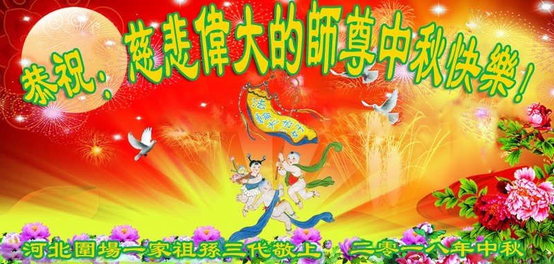 师尊您好!师尊辛苦了!在这中秋佳节来临之际,弟子非常想念师尊,弟子心怀无限的感恩和崇敬恭祝师尊中秋快乐!在弟子修炼路上每前進一步,都浸透了师尊的无量慈悲和巨大付出,弟子叩谢师尊佛恩浩荡! 我们要学好法、学懂法,修好自己,在提高心性上多下功夫,认真做好三件事,这是我们的责任,我们一定会做得更好,因为我们有伟大的师父,有伟大的法!