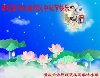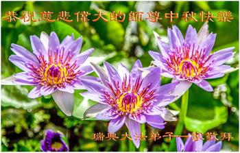 师父洪大的慈悲、为众生艰辛的付出,倾尽人类所有的语言都无法表达。值此中秋佳节之际,我和我的女儿——昔日的小同修恭祝慈悲伟大的师尊中秋快乐!并叩谢师恩!我女儿于一九九七年不到十岁时就随我到炼功点炼功,参加过四、二五。一九九九年七.二零法轮功被迫害的前一天,我们参加了最后一次集体炼功。那天,我对女儿说,咱们一起回到天上去好吗?女儿说好。就这一字的应诺,师父就一直在管着她。法轮功被迫害后,我怕未成年的孩子应付不了残酷的迫害,就没带她继续修炼。但师父始终没有放弃她。前几年,师父安排她来到海外修炼,然而由于某些原因,她没能走入修炼。最近师父再次为她做了安排,她终于走進了修炼。慈悲伟大的师父不想落下每一个昔日同修和当年的小弟子,希望还没有走回修炼的同修,不枉师父的慈悲苦度,赶快回到大法中来吧。再次叩谢师恩!合十