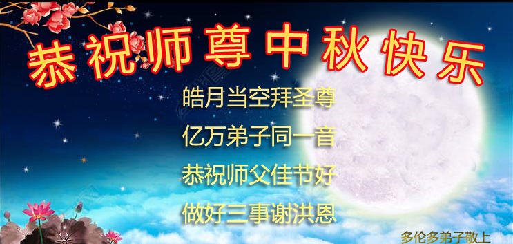 值此中秋佳节来临之际,弟子们感谢慈悲伟大的师父,感谢师父的慈悲加持、苦心呵护与慈悲点悟。师父您辛苦了,弟子们恭祝师父中秋快乐!