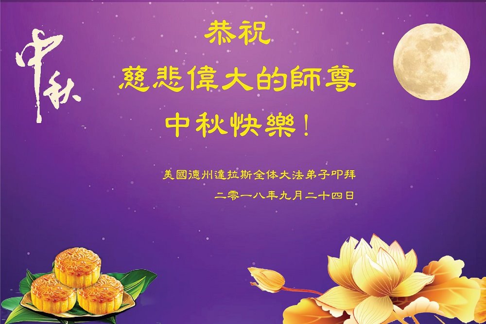 <英文版: http://en.minghui.org/html/articles/2018/9/24/172263.html>美国17州大法弟子恭祝师尊中秋快乐