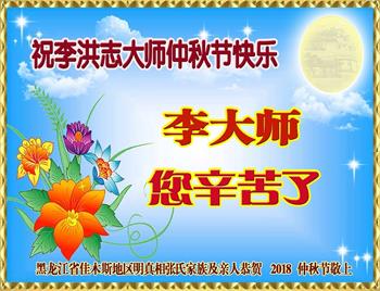 中国大陆各地民众也纷纷给大洋彼岸的法轮大法创始人李洪志先生发来贺信,恭祝李大师中秋节快乐!他们当中有帮助大陆弟子的律师;有因支持大法、帮助大法弟子,从而得福报的百姓;有在大法弟子的规劝下明法理,在处理邻里关系上化干戈为玉帛的村民;有被医生认定医治无望,却在诚念“法轮大法好”后重获新生的老者;还有的来自明真相“三退”保平安的中国人。