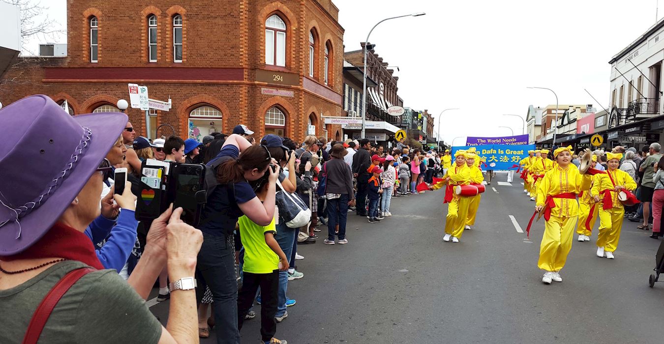 有些澳洲人对着法轮功游行队伍竖起大拇指说:“做得好,你们(法轮功)非常了不起!”