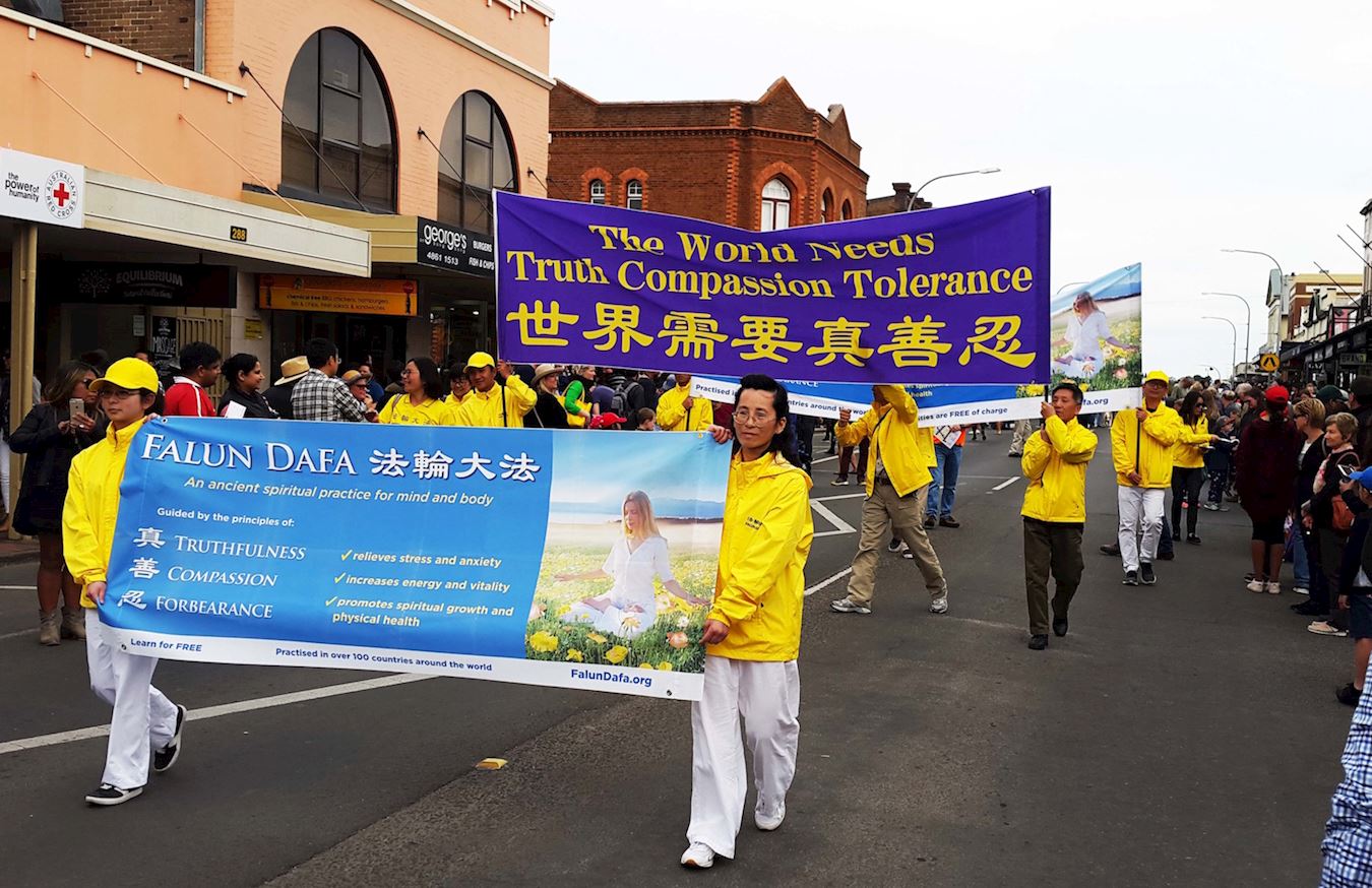 ![]() 图1~5:法轮功学员参加澳洲宝柔镇郁金花香节游行 |