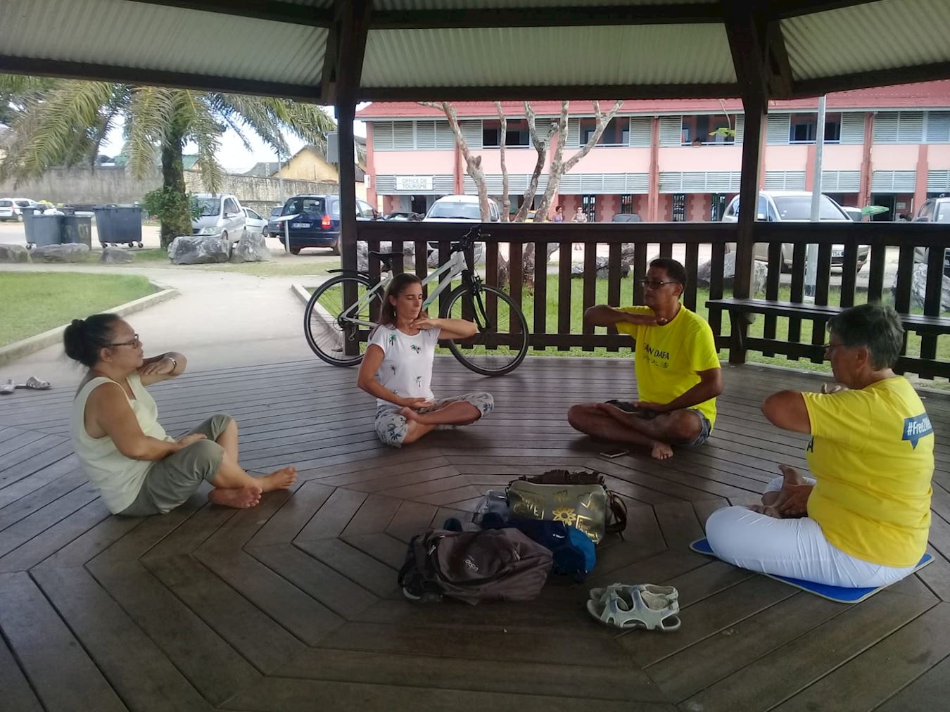 法轮功学员们从卡耶纳(Cayenne)开始,经过马若尼的圣罗朗(Saint Laurent du Maroni),到达了马纳(Mana)。之后又到了格朗桑地(village Grand Santi),马利巴素拉(Maripasoula),新瓦加布村(village New Wacapou)。每到一个城镇或地方,他们都会去市政府,向政府工作人员介绍法轮功及真相,组织一次教功、炼功的活动,并把法轮功资料和信息带给他们。
