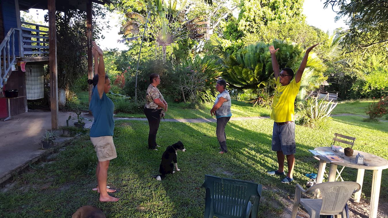 法轮功学员在圭亚那两个星期的旅行,尽管天气炎热,有蚊虫叮咬,学员们克服了重重困难,很高兴把法轮功的真相带到了法国边远地带。