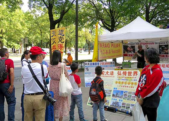 慕尼黑法轮功学员从今年四月份开始,坚持每周六在景点举办活动,给大陆中国人讲法轮功真相,协助中国人退出中共一切组织(简称三退),选择光明的未来。