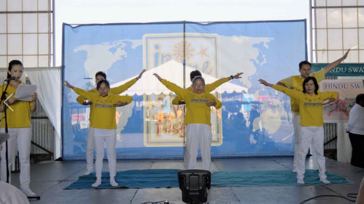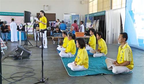 ![]() 图4:纽约州府奥伯尼云雀节上,人们现场学炼法轮功。 |