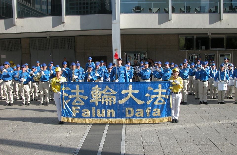 随后,法轮功学员组成的天国乐团还特地在人流聚集的旧市政厅广场,歌剧院及火车站前停留并演奏乐曲。同时,也在这几处向民众演讲,呼吁民众支持法轮功反迫害。很多人拿到传单后立刻好奇的开始阅读。