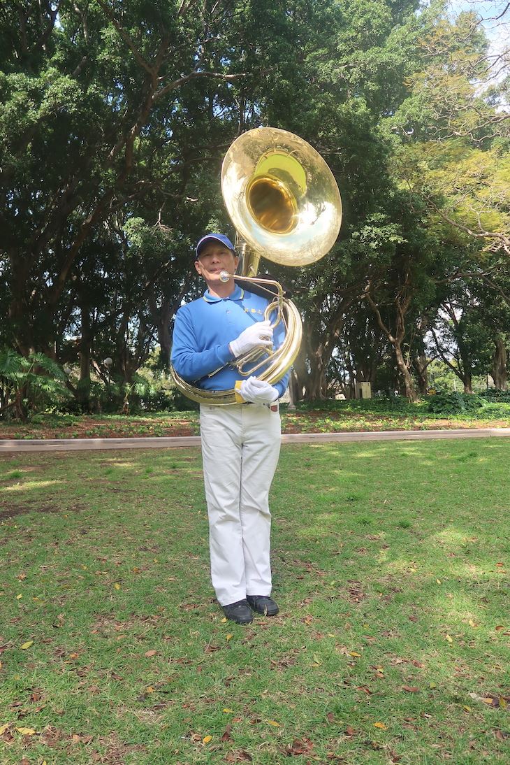 走在游行队伍中打头的天国乐团方阵里的颜智辉修炼法轮大法二十三年了,他说:“在我得法前两年,我嗜赌如命,经常往赌场跑,完全控制不了自己,很痛苦,但是又戒不了。学了法轮功后,我很清醒的从法轮功法理中认识到,这种上瘾的东西就像鬼附体一样,你要想做一个人,做一个真正的自己,就不能被这些不好的东西给控制住,明白这个道理后,我就很容易的把这些不好的东西戒掉了。”
