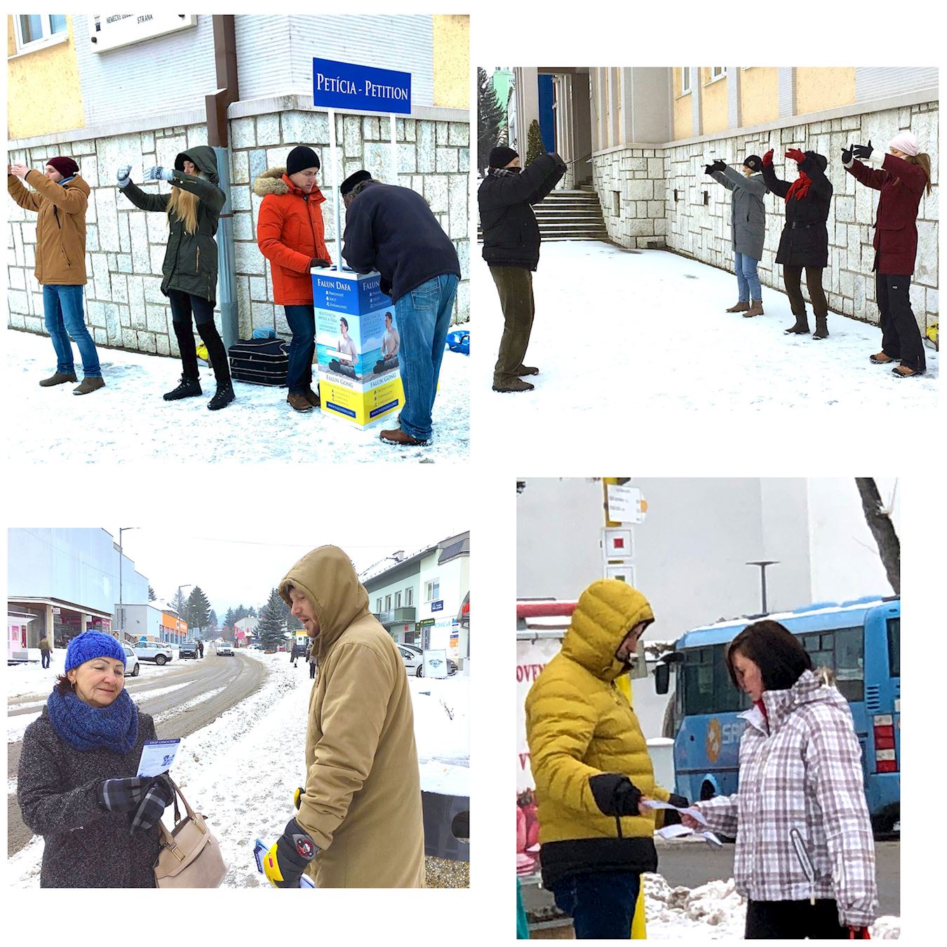 '图3:冰天雪地中,斯洛伐克法轮功学员在中部城市汗德罗瓦传播真相'