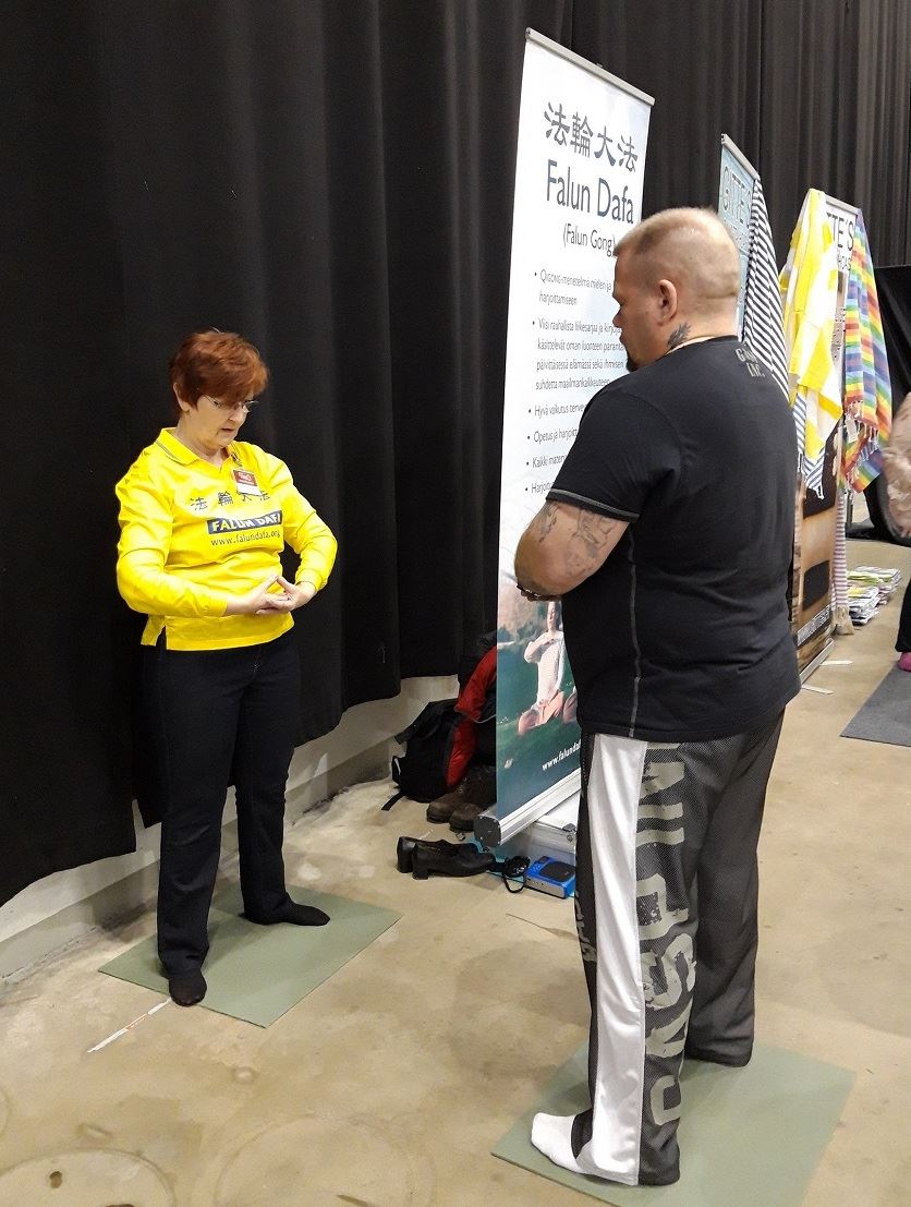 【明慧网二零一九年一月十八日】芬兰法轮大法学会应邀参加了二零一九年一月十二日至十三日在坦佩雷市举办的VIRE健康展会。简单易学的五套功法和真、善、忍修炼原则吸引了很多民众前来了解与尝试功法。