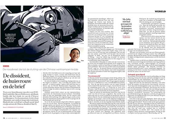 二零一九年一月十六日,比利时佛拉芒语每周新闻杂志《诀窍》(Knack)发表文章,揭露中共对法轮功学员的迫害。