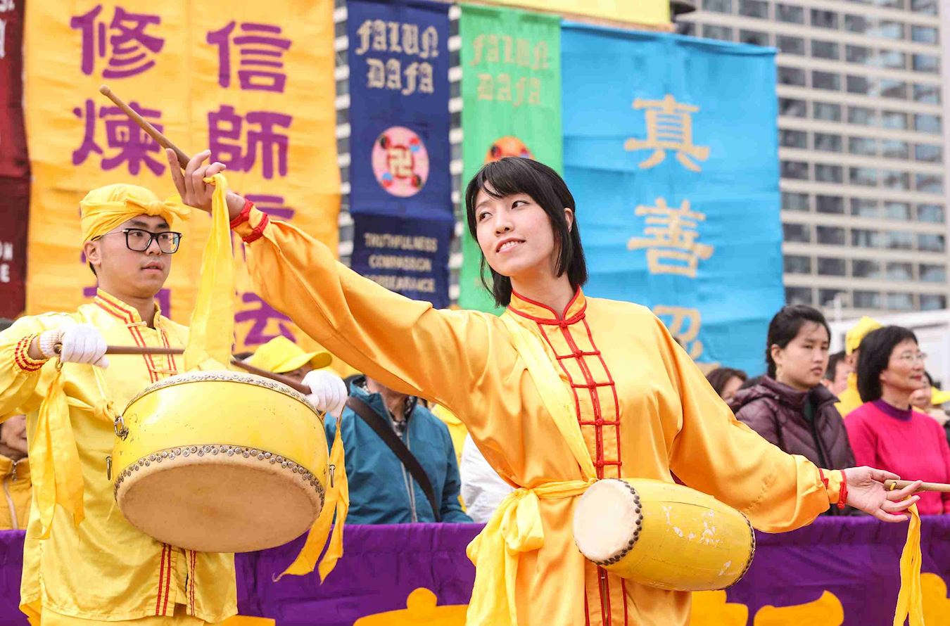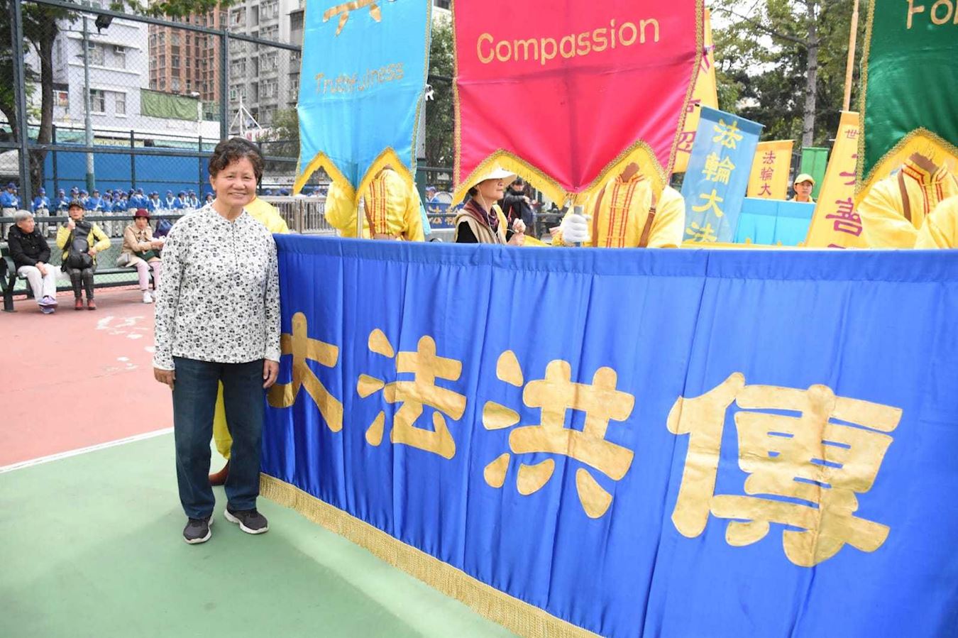 年轻法轮功学员衡衡参与了腰鼓队表演。她忆述九九年初母亲看到电视节目介绍法轮功后开始修炼,带着她一起炼功、学法。自小身体差,往往每隔几天就要看医生,修炼后她身心明显好转,过去不时失眠,如今睡的很好。年幼时曾跟着姐姐去教会,常听说神会再回来,修炼法轮功后,她觉得很荣幸,知道创世主已经到来。在媒体项目工作的她,工余时间都会到景点向大陆游客讲真相劝三退(退出中共党团队,简称三退),体会到很多生命急于得救的心,有的大陆游客三退后还跟她们鞠躬道谢,令人感动。她眼泛泪光感颂师恩:“多谢师父。祝师父新年快乐!”