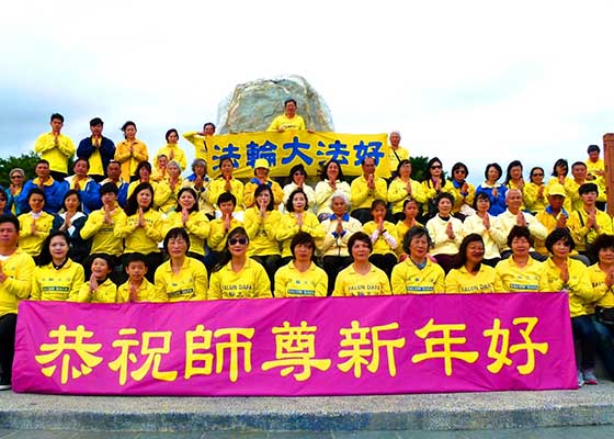 中国新年将临之际,台湾台东部份法轮功学员,在滨临太平洋的台东海滨公园,向法轮功创始人李洪志大师拜年。